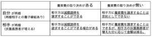 自分が再婚をする場合と相手が再婚をする場合、養育費の取り決めがある場合と無い場合とで、それぞれ違いがあります。まとめると、以下の表のとおりです。